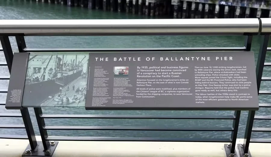 Along the Seawall, and at the entry to each meeting room in the West building, more than 60 stories, each one written by John Gray in simple language, bring to life a single event and/or person in the working history of the province.