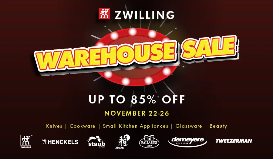 ZWILLING in-person Warehouse Sale is coming to Vancouver! Huge kitchenware inventory clearance of up to 85% off across all brands: ZWILLING, Staub, Miyabi, Demeyere, Ballarini, Henckels and Tweezerman.